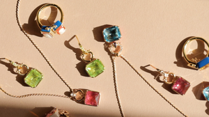 Diamond pavé and pear-shaped citrines set in 18k yellow gold create these Love Hearts, with the drop decorated with vibrant green enamel.