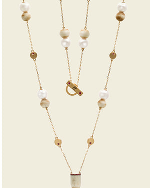 My Smoking Cigarettes Necklace features a hand-carved antique Ivory cigarette mouthpiece set with rubies and pearls— to be worn by the most elegant of ladies.