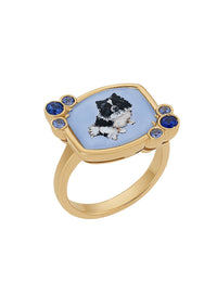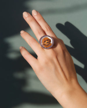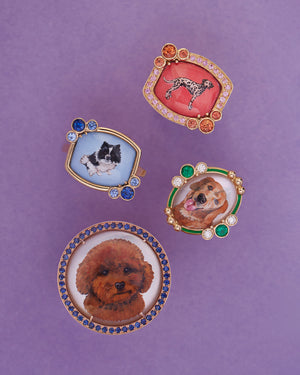 A custom style created in the sapphire colours of your choice, featuring a hand carved and painted portrait of your pet.